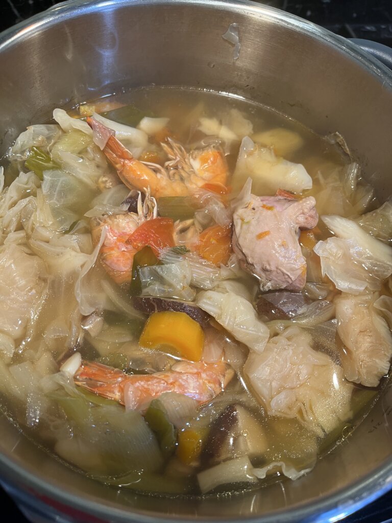 鍋は「スープだけ味変」してわりと登場します。味噌バター味とか、コンソメとか、和風とか。